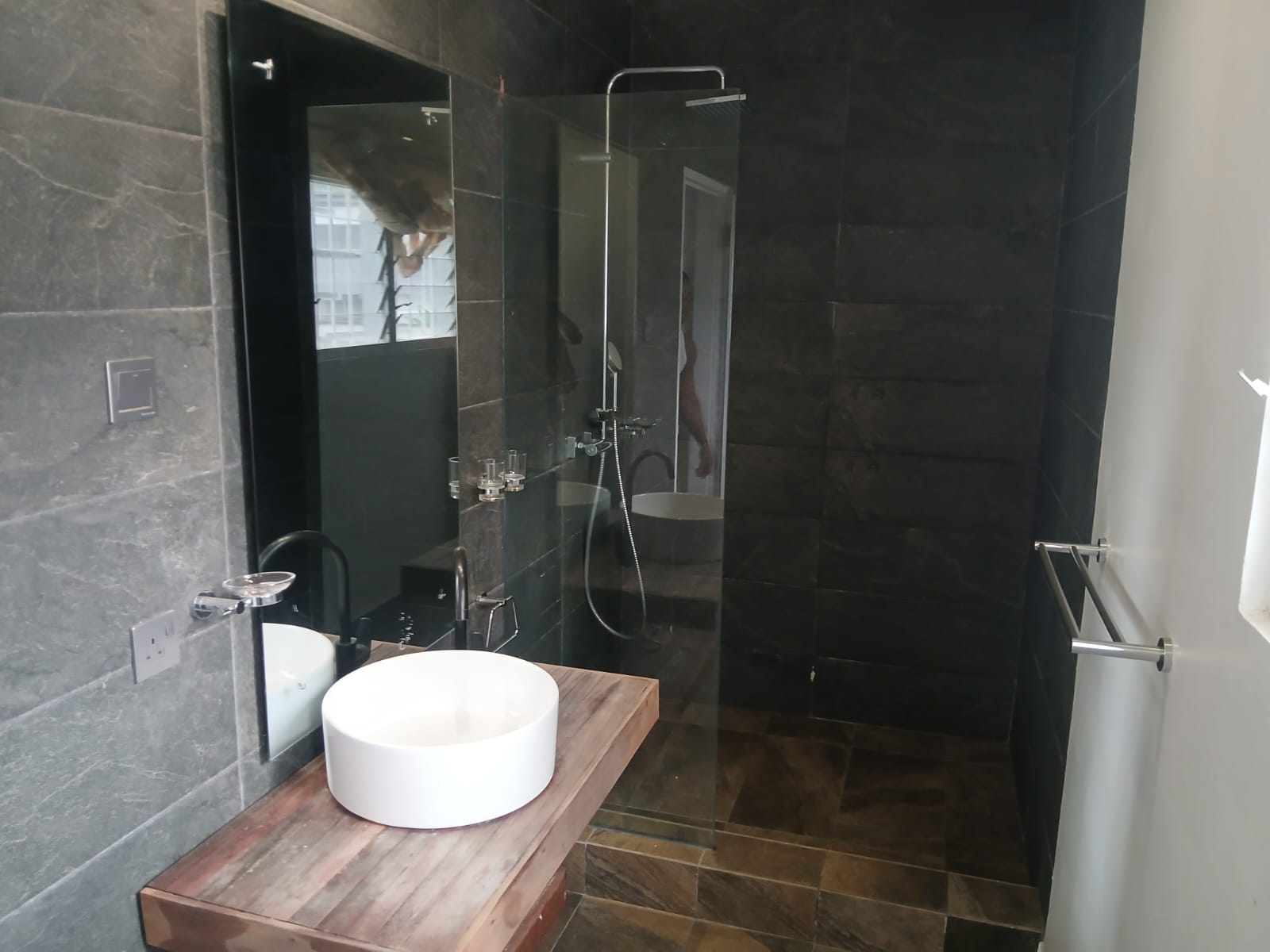 A fully fitted kitchen with pantry complements the home’s contemporary layout, supported by two staff quarters with their own kitchen and bathroom facilities.